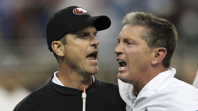 Lions coach Schwartz was not best pleased with Harbaugh and the two exchanged angry words before both teams got involved in some pushing and shoving by the tunnel.