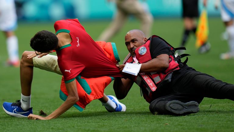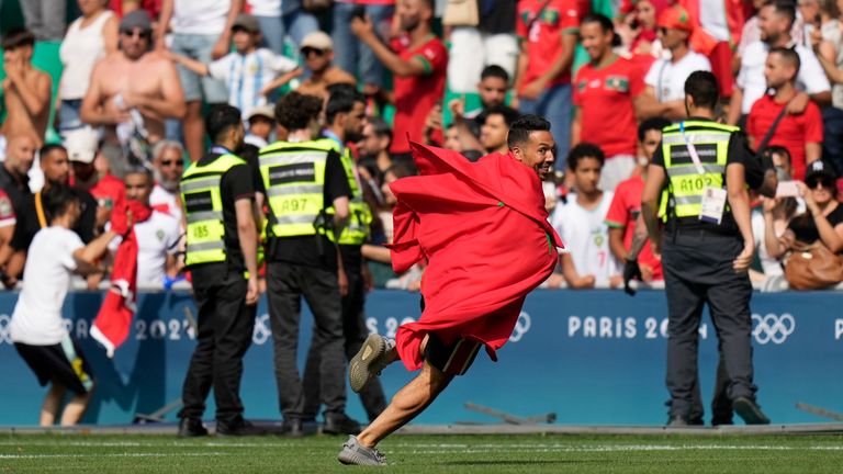 A statement on Thursday by Games organisers said: "The football match between Argentina and Morocco at the Saint-Etienne Stadium was suspended due to a pitch invasion by a small number of spectators.