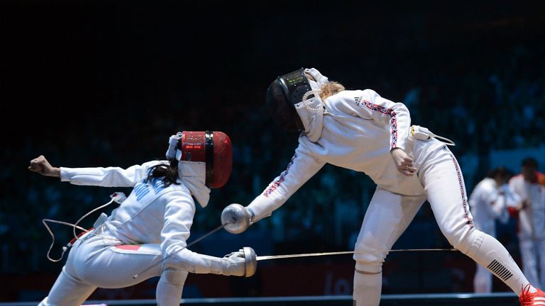 Simona Gherman proved too strong for Britain's Corinna Lawrence in the last 32 of the women's epee at the ExCeL.
