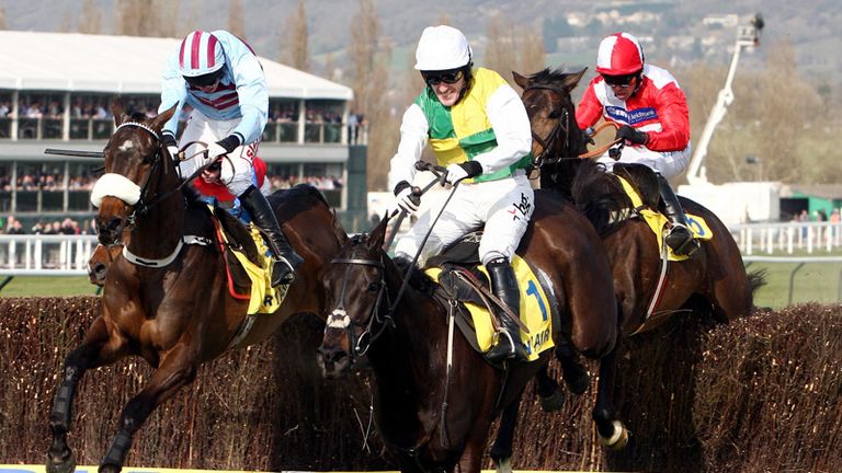 Image: Big Buck's gets the better of Grands Crus to win a third successive World Hurdle. -