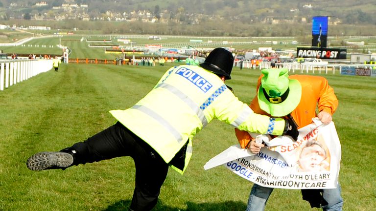 Image: A protester is arrested after the Ryanair. -