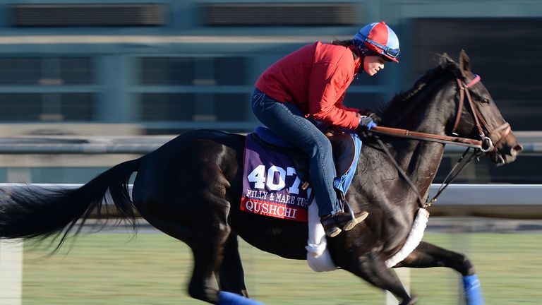 Image: Qushchi works ahead of the Fillies & Mares Turf -