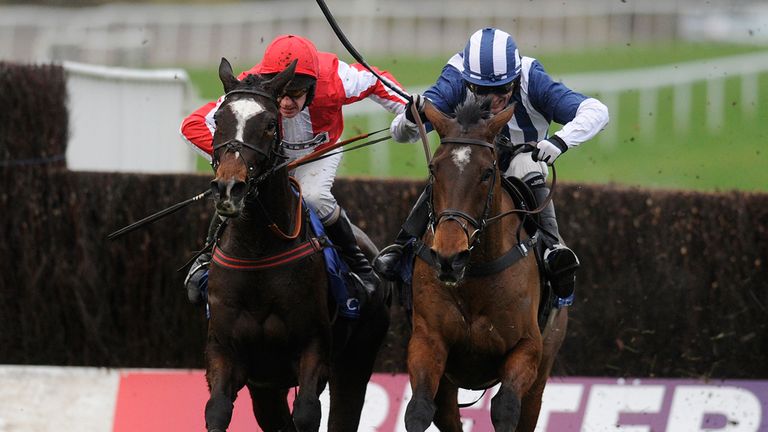 Image: Monbeg Dude (left) outbattles Teaforthree to win the Welsh National