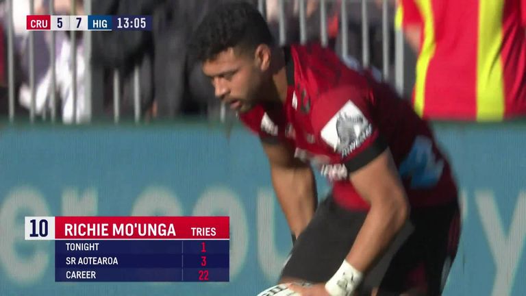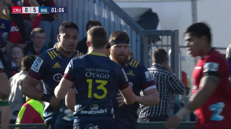It's worth watching again just for his break and no-look offload, but the real craft came from Highlanders' wing Josh McKay, who chased down Hall and somehow knocked the ball free on the line to deny the Crusaders the try and the lead.