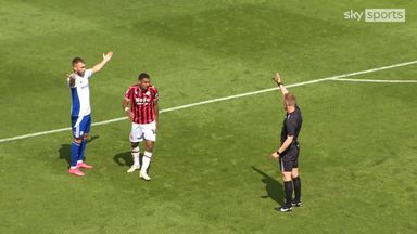 Walsall's Brandon Comley sees red after pulling on a Swindon Town players shirt.