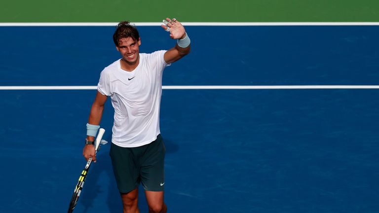 Image: Rafa Nadal walks on court to take on Ivan Dodig -