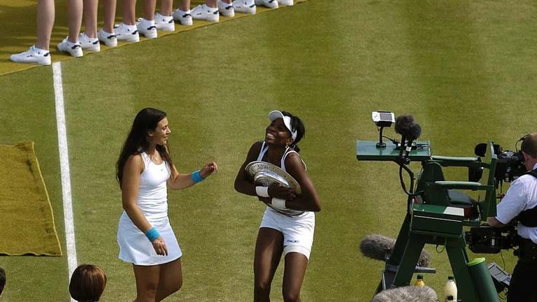 Image: July: Venus Williams shares a joke with Marion Bartoli after beating the Frenchwoman 6-4 6-1 for her fourth Wimbledon title. -