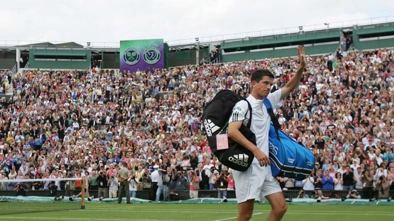 Image: July: Tim Henman bids farewell to SW19 after his second round defeat to Feliciano Lopez. -