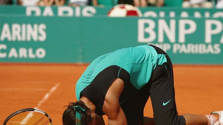 Image: April: Nadal begins the clay-court season with a 6-4 6-4 win over Federer to win his third successive Monte Carlo Masters title. -