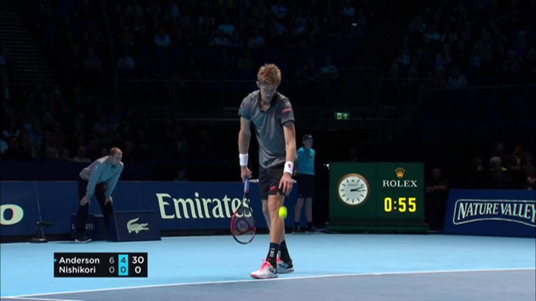 Anderson looked on course to become the first player since Roger Federer hammered Gaston Gaudio 13 years ago to record a whitewash at the year-end championships. That was the case until the 12th game when the relief on Nishikori's face was palpable when he finally held. However, Anderson did complete a handsome victory in the very next game to close in on the last four.