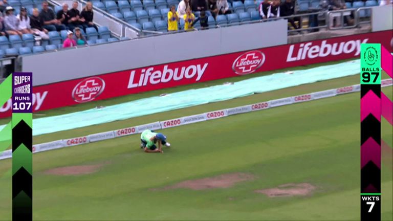 With the Superchargers in search of quick runs late in their 100 balls, Davidson-Richards thumped Tash Farrant out into the legside, the connection was good and another boundary seemed the likely outcome before Eva Gray rushed around the rope and took an excellent low catch to quiet the Headingley crowd.
